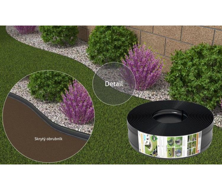 Zahradní obrubník je maximálně pružný a zároveň dostatečně tuhý, nepraská a neláme se. Snadno jej zformujete do požadovaného tvaru. To Vám dává svobodu k vytvoření oblouků a křivek podle Vašich představ. Obrubník zamezí prorůstání trávy a oddělí dva povrchy. Můžete ho přejíždět rotační sekačkou a strunovou osekávat.